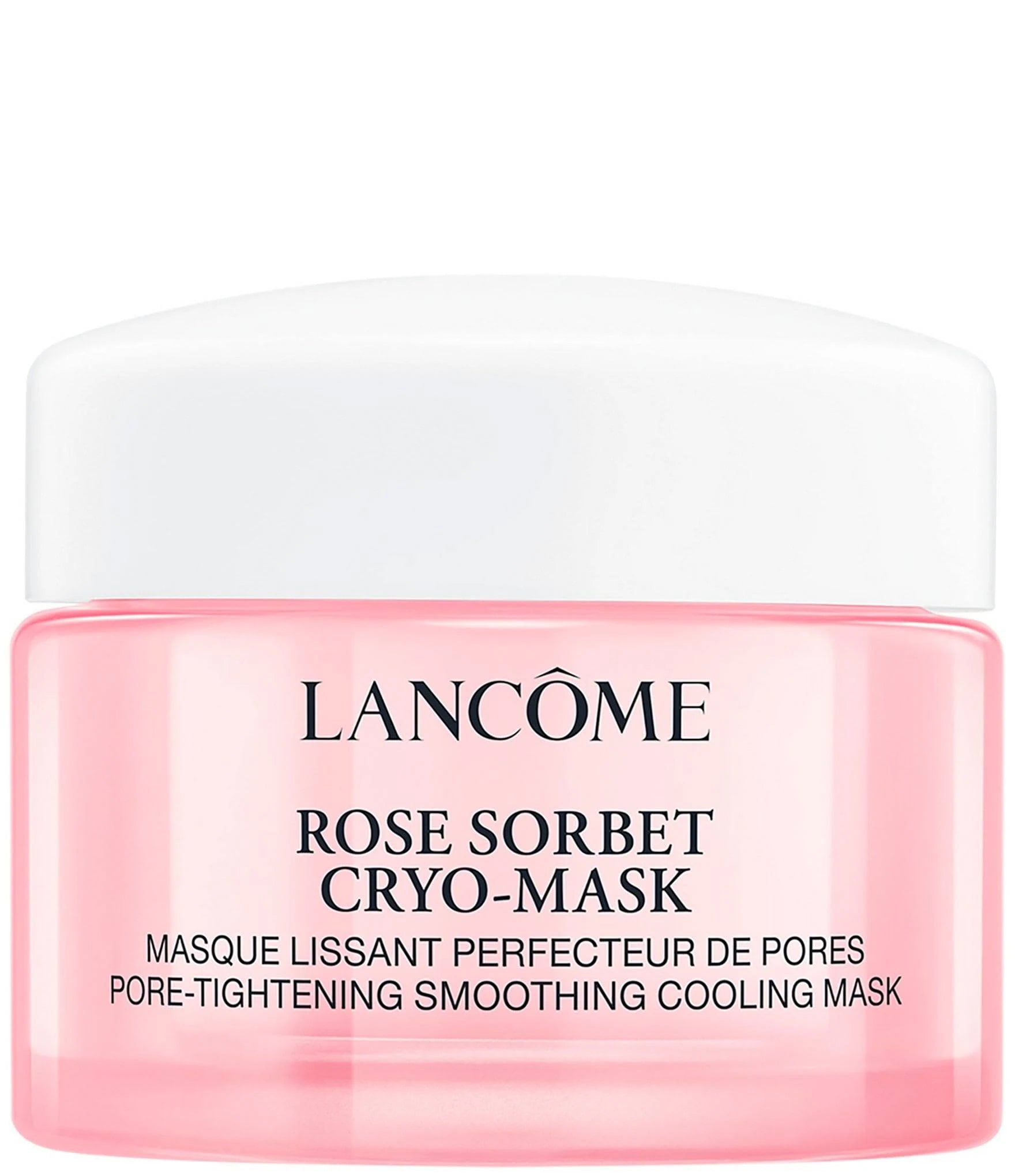 Lancôme Rose Sorbet Cryo-Mask; Actúa sobre la textura de la piel reduciendo la apariencia de los poros para dejar una tez suave y refinada. Además, cuenta con propiedades antifatiga, aportando extra-energía y vitalidad al rostro en tan solo unos minutos. También, mejora los resultados del maquillaje.