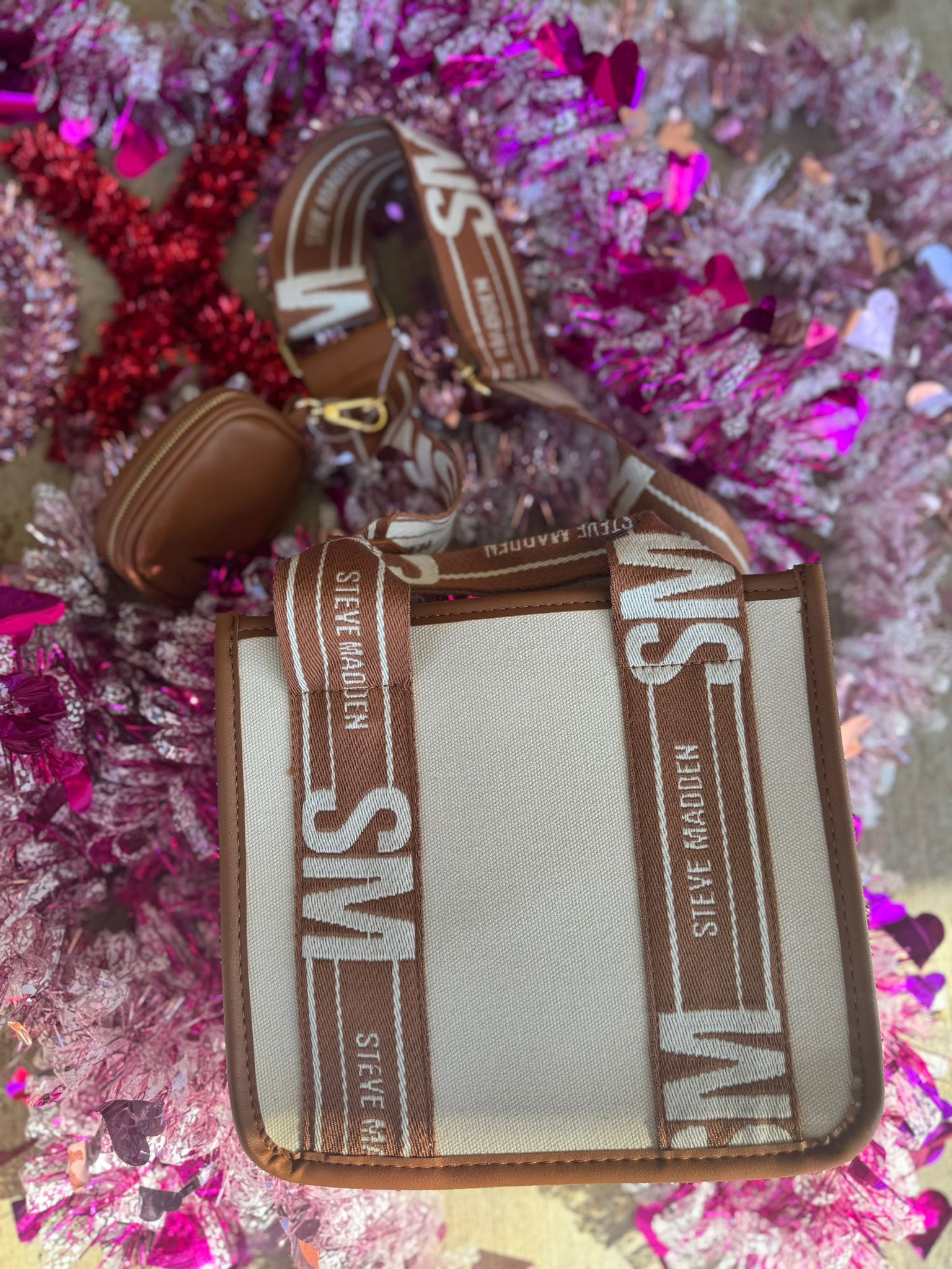 STEVE MADDEN CREAM/BRWN SATCHEL